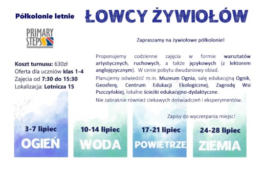 Zapraszamy na półkolonie letnie w naszej Dwujęzycznej Szkole Podstawowej „Primary Steps”