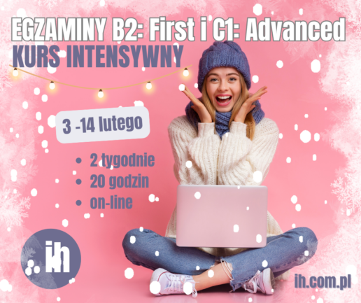 Od 3 do 16 lutego w IH trwają ferie. W tym czasie zajęcia nie odbywają się, a biuro czynne jest od 10.00 do 16.00. Podczas ferii zapraszamy na kursy i warsztaty intensywne. Przypominamy również, że zaplanowane przerwy w nauce ujęte w kalendarzu na dany rok szkolny są uwzględnione w kalkulacji godzin całego kursu.