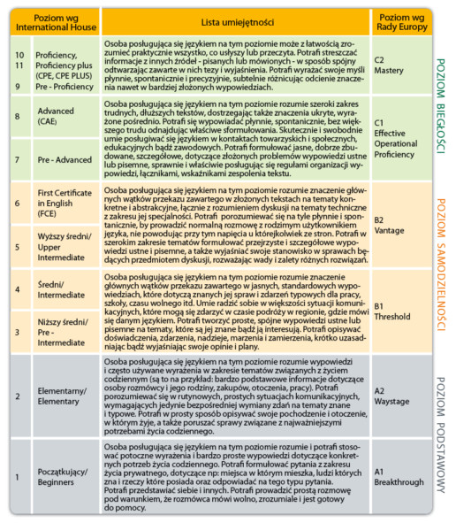 System poziomów funkcjonujący w International House Integra pomyślany jest w sposób gwarantujący kontynuację nauki w naszej szkole na kolejnych poziomach zaawansowania.